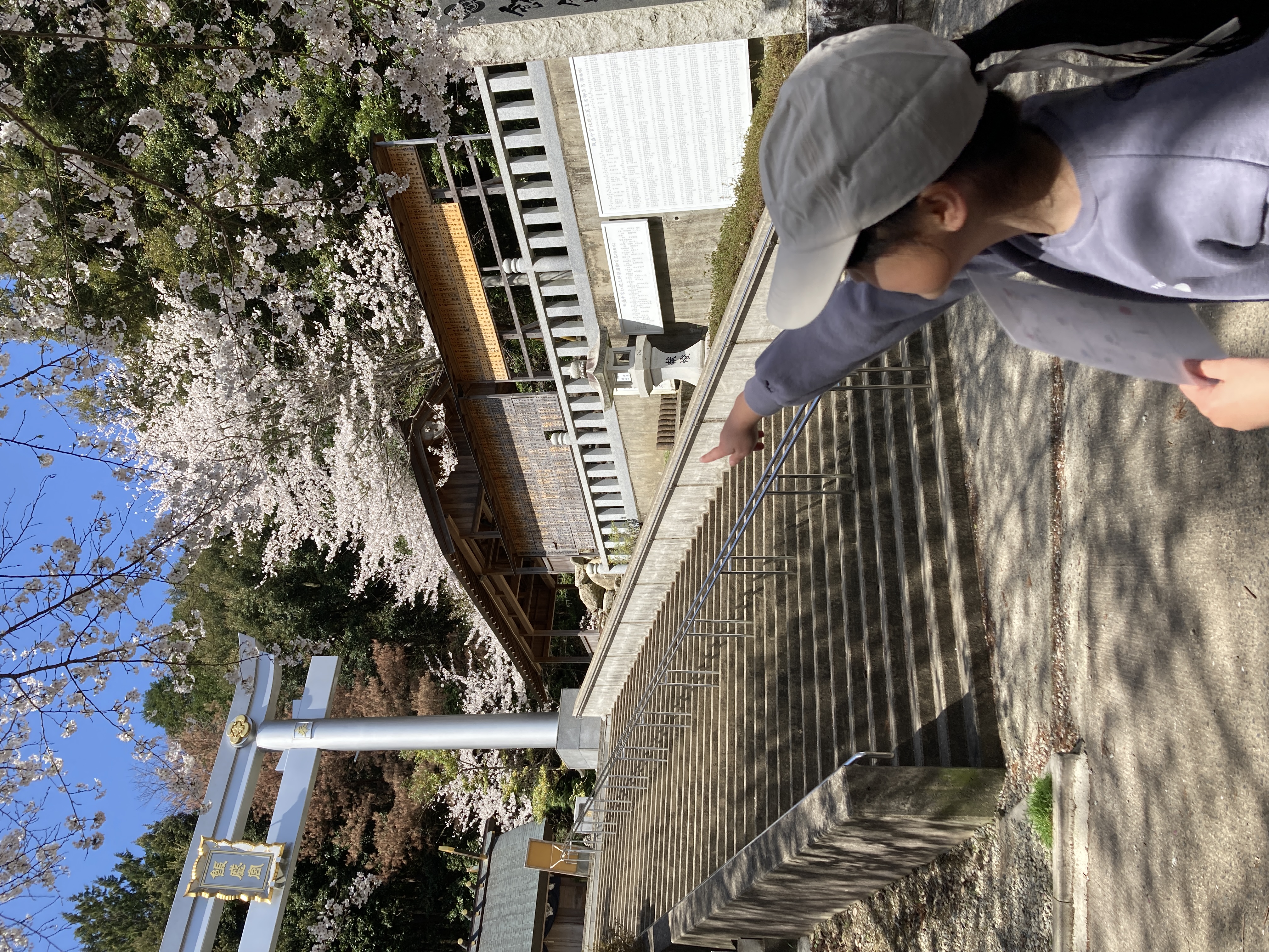 大きな鳥居に満開の桜、桜の前で記念撮影もしました