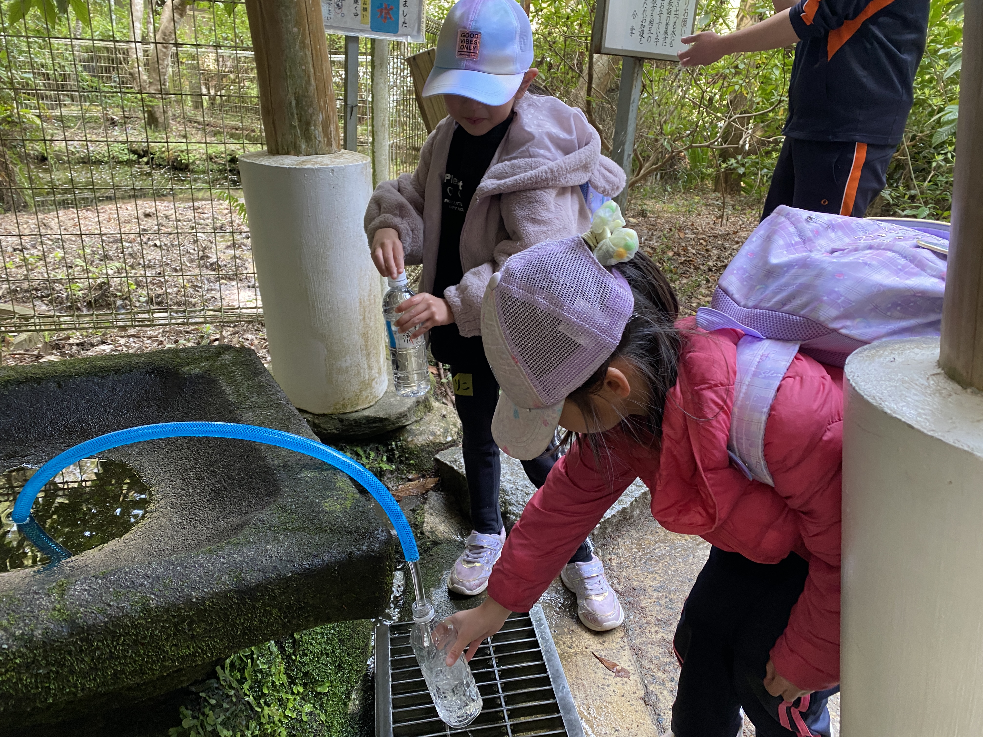 石臼の様な水汲み場からコンコンと湧きだす水は飯森山の伏流水を水源とした地下水なんです